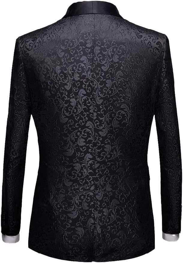 Schwarzes Brokat-Sakko, florales Muster, elegantes Herrenjackett, festliche Abendmode.