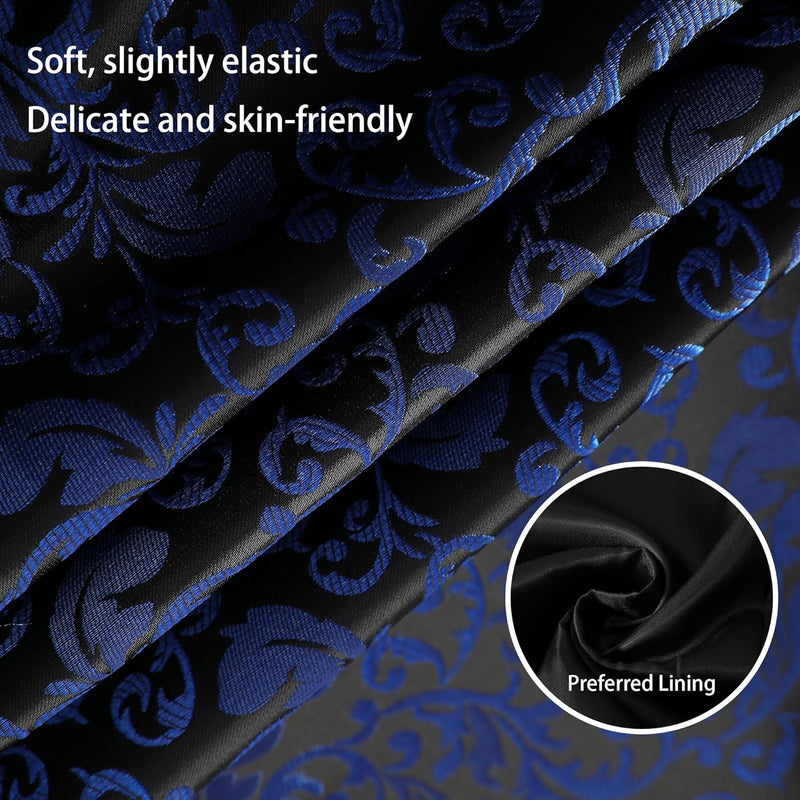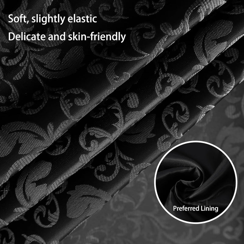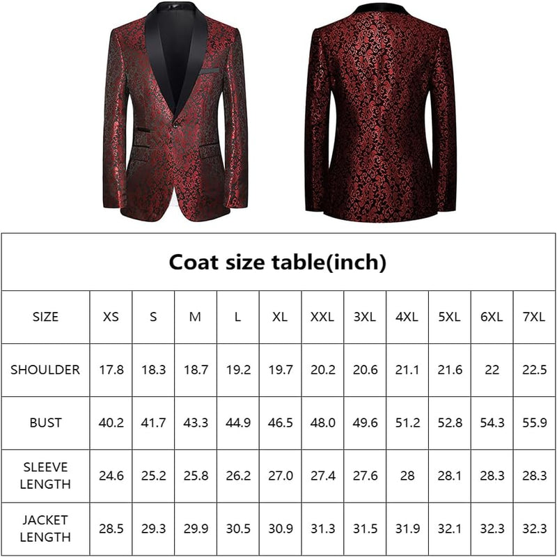 Schwarzes Herren-Sakko mit floralem Muster, glänzendem Stoff, Größen XS bis 7XL, Größentabelle.