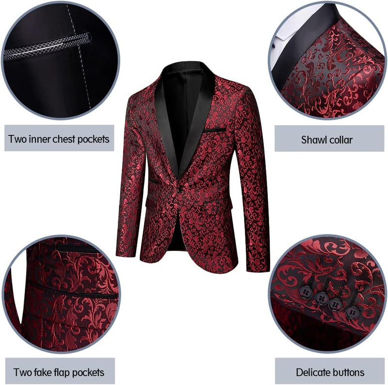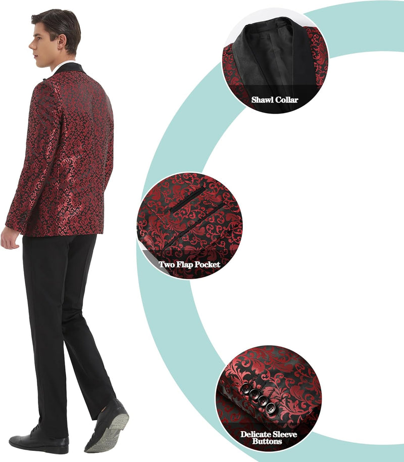 Roter Brokat Smokingjacke Herren, florales Muster, festlich, elegant, Anzugjacke, Hochzeit.
