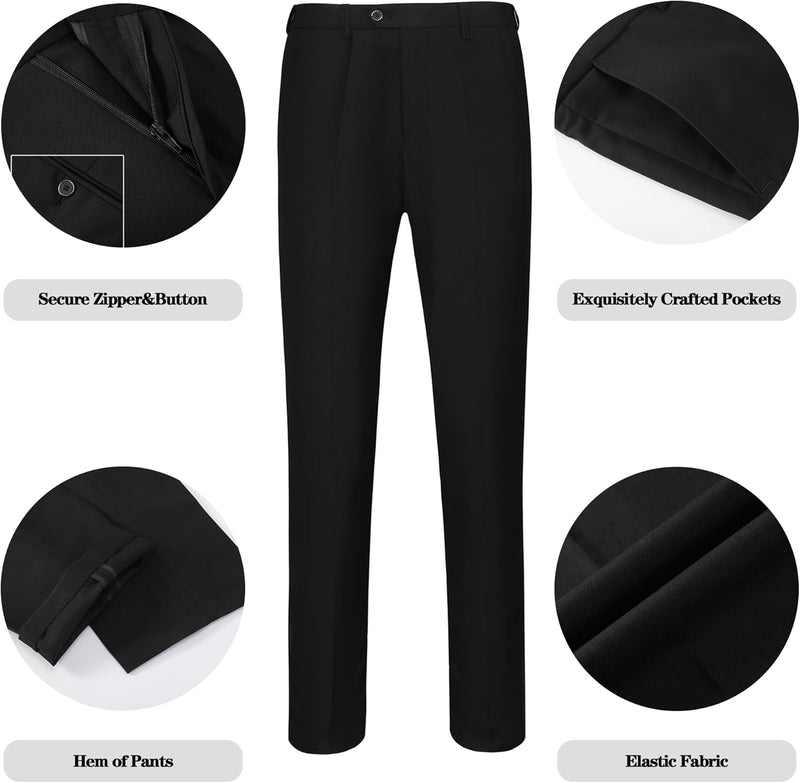 Schwarze Herrenanzughose, elastischer Stoff, sichere Reißverschluss & Knopf, exquisite Taschen.