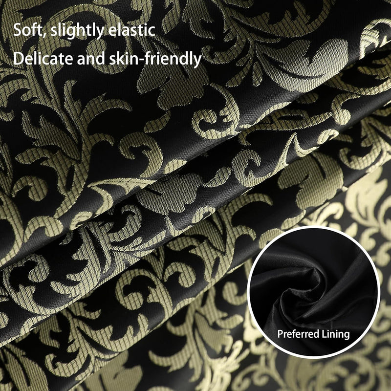 Schwarzer Jacquard-Stoff mit goldenen floralen Mustern, weich, leicht elastisch, hautfreundlich.