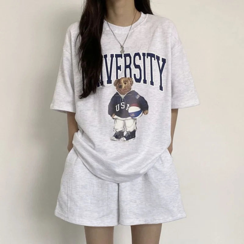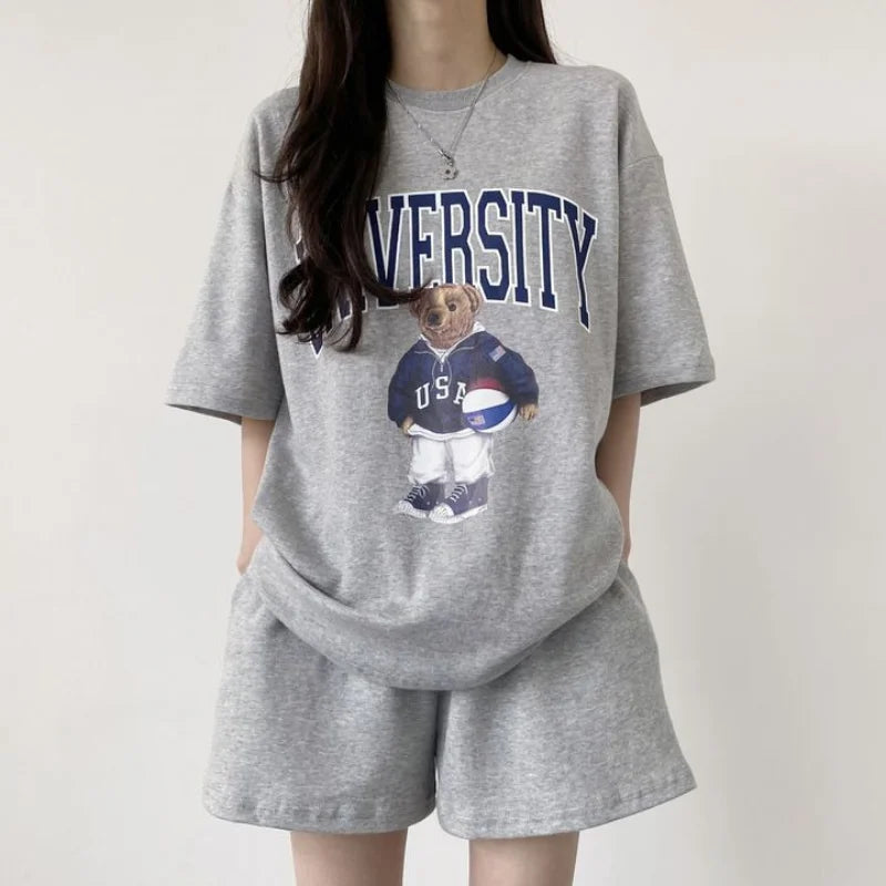 - Design: Kurzarmshirt mit passender Shorts, Bärenprint