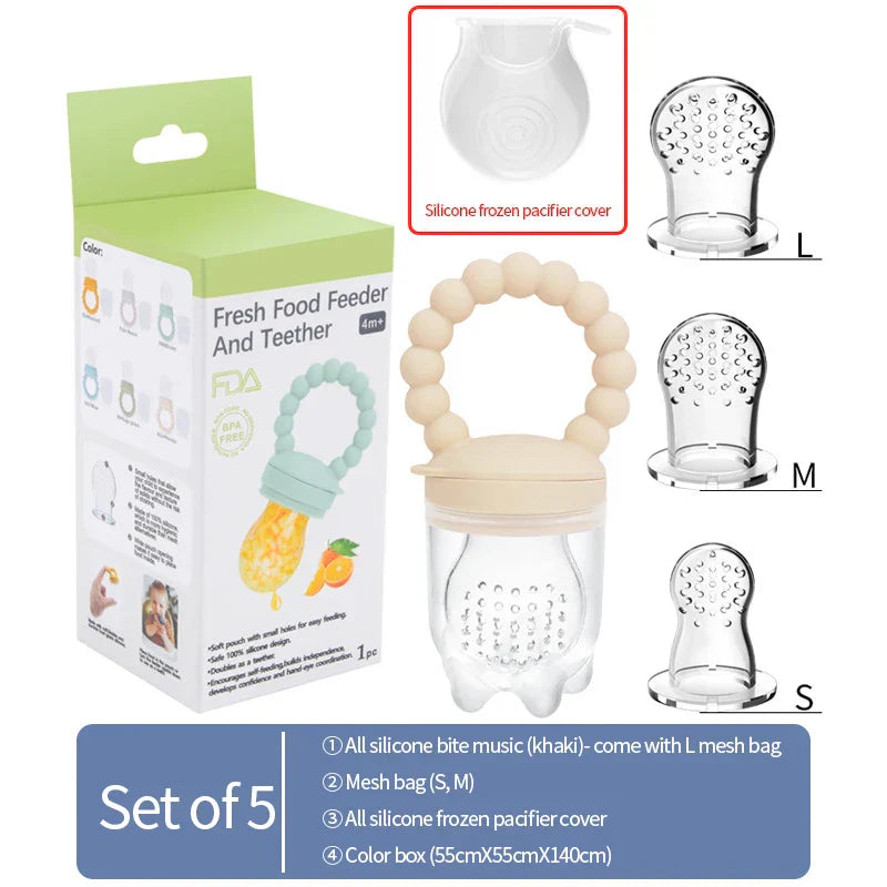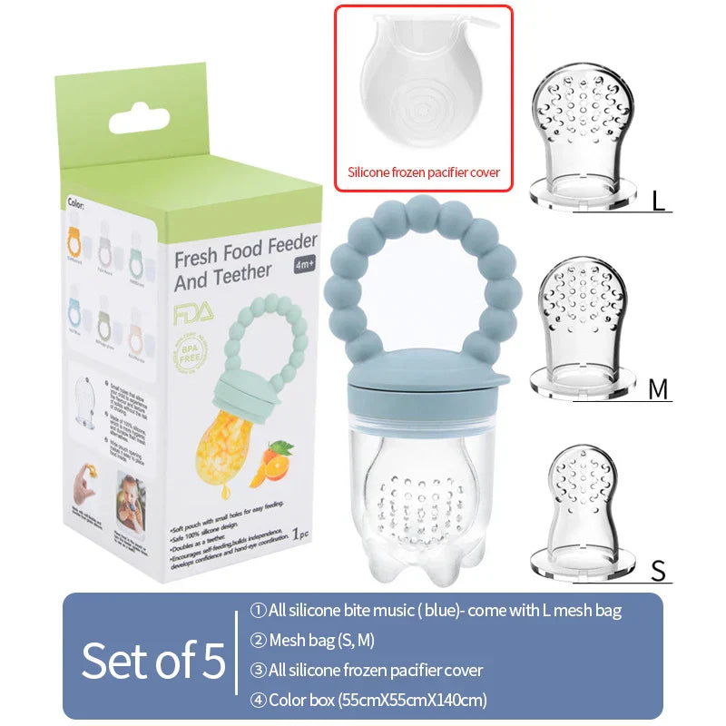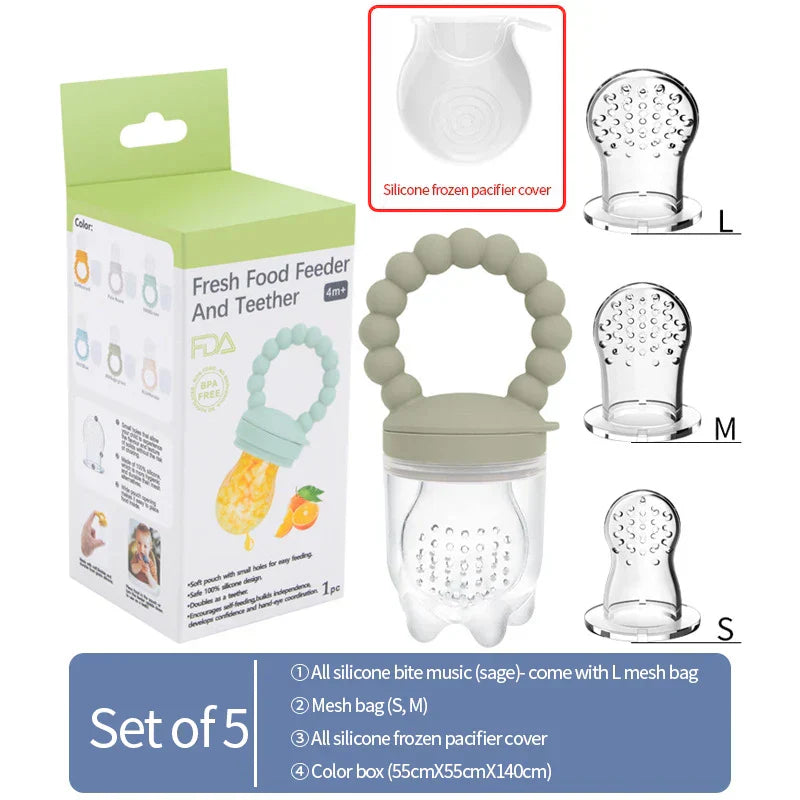 Mit unserem Frucht-Schnuller lernt dein Baby neue Geschmäcker sicher kennen. Der weiche Silikonaufsatz lässt nur kleine, unbedenkliche Stückchen durch, ideal für erste Erfahrungen mit Obst und Gemüse. Gleichzeitig wirkt das Saugen beruhigend beim Zahnen. Perfekt für die Förderung gesunder Essgewohnheiten – und aktuell mit 1+1 GRATIS erhältlich!