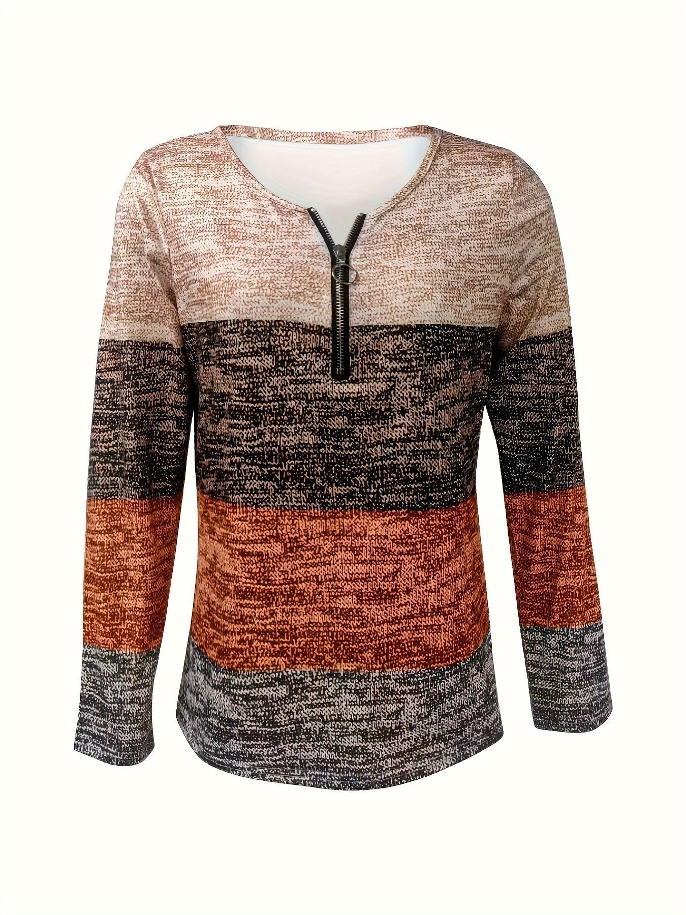 Damenpullover mit Blockstreifen und Viertelreißverschluss – Mila