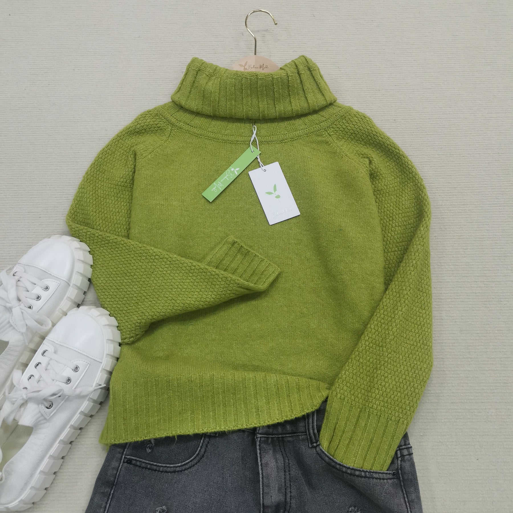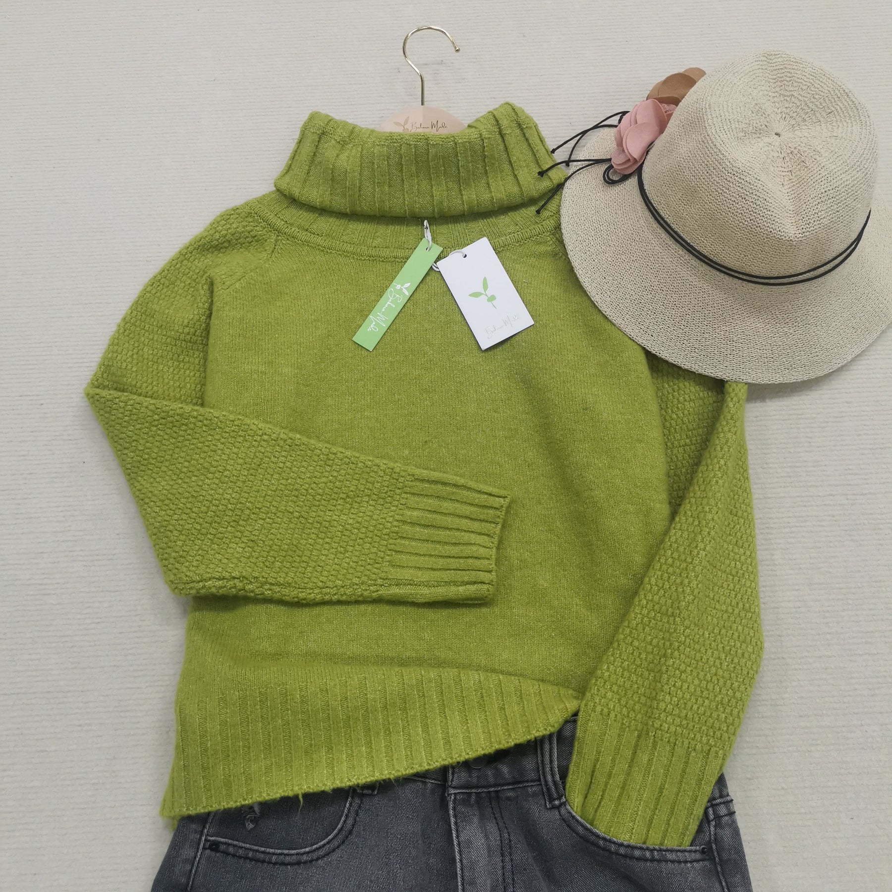 Leuchtend grüner, übergroßer Strickpullover mit Rollkragen - WinterZauber