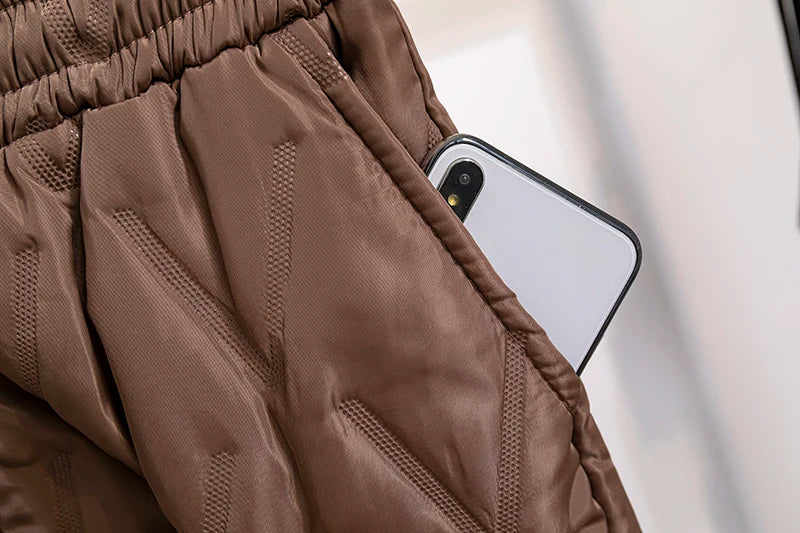 Werten Sie Ihre Wintergarderobe mit der Plus Size Winter Daunen-Baumwoll-Hose auf, einer perfekten Mischung aus Komfort und Stil für kältere Tage. Diese Hose ist auf Wärme ausgelegt und verfügt über eine Daunen-Baumwollfüllung, die vor der Kälte schützt. Der elastische hohe Bund sorgt für einen sicheren Sitz und das lockere, lässige Design ermöglicht Bewegungsfreiheit und Vielseitigkeit beim Styling.