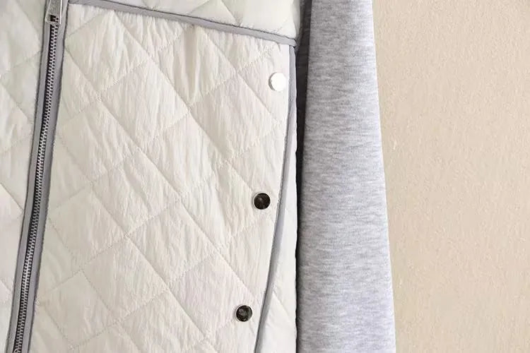 Diese stilvolle, gesteppte Kapuzenjacke in Übergröße mit Rautenmuster vereint nahtlos Mode und Komfort. Mit Kapuze und langen Ärmeln bietet es praktische Wärme in der kälteren Jahreszeit. Die Rauten Absteppung verleiht einen Hauch von Raffinesse, während die kontrastierenden Farbnähte für einen optisch ansprechenden und trendigen Look sorgen. Dieser Mantel ist die perfekte Wahl für alle, die in ihrer Wintergarderobe eine Mischung aus Stil und Funktionalität suchen.