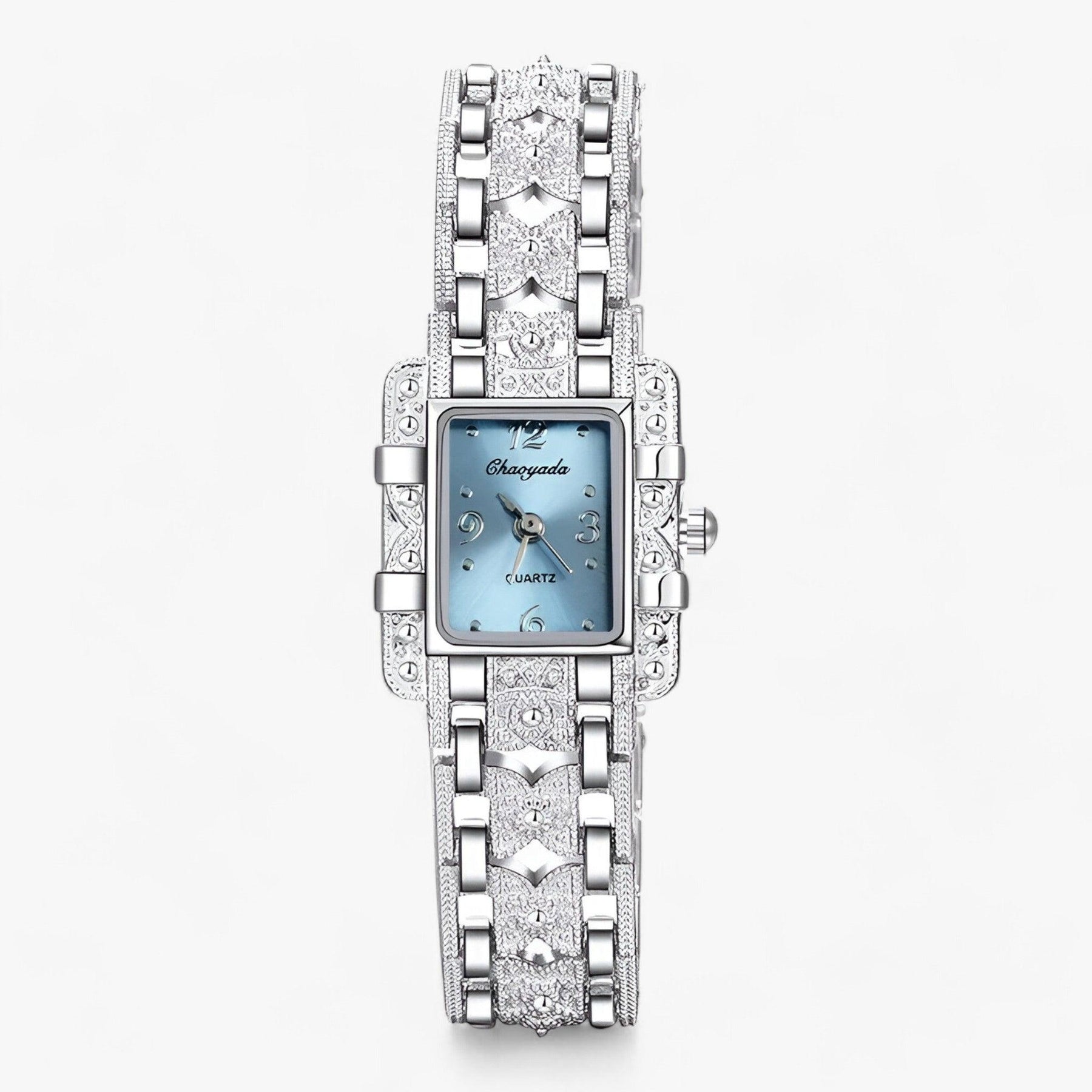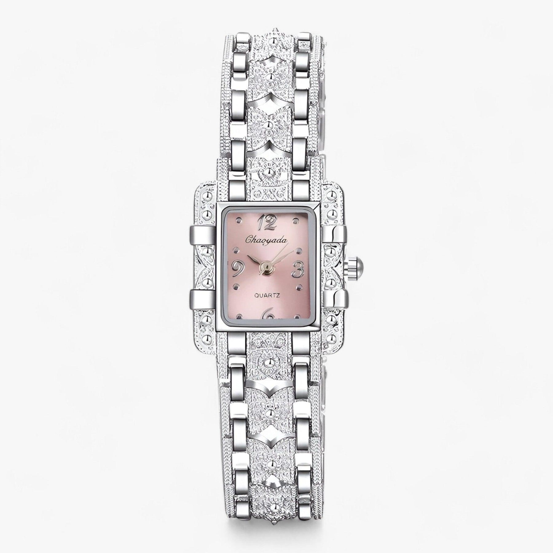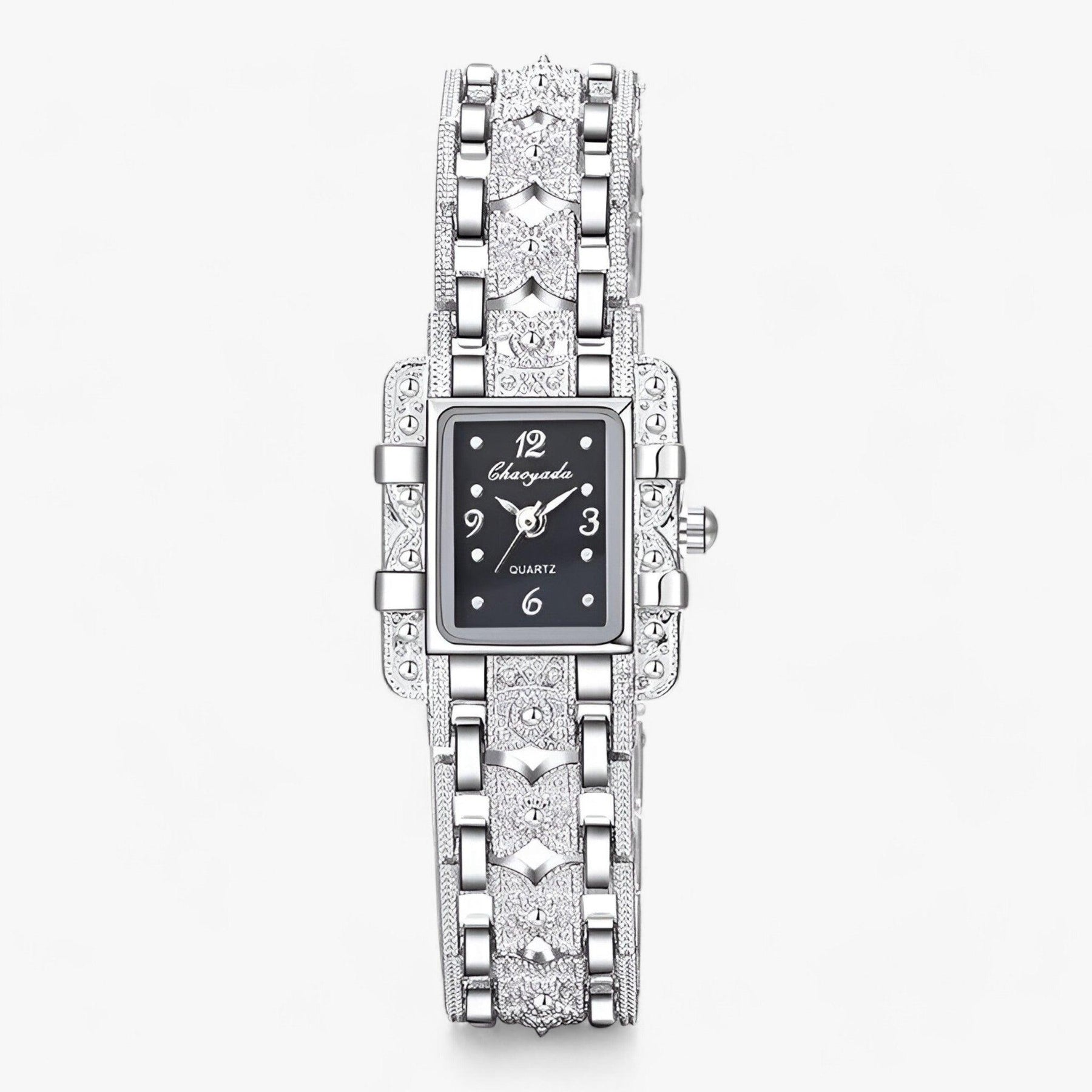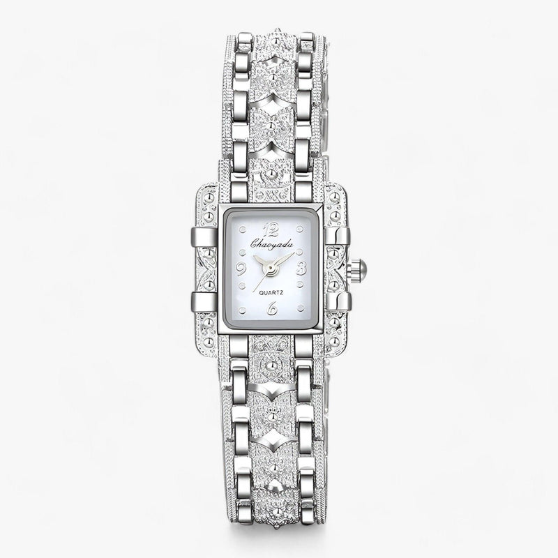 Stilvolle Uhr mit rechteckigem Zifferblatt und Kristallen - Camille