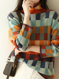 Herbstlicher luxuriöser karierter Damenpullover - Eveline