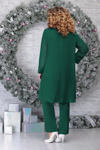 Erleben Sie Eleganz mit dem 3-teiligen bestickten Anzug in Übergröße, einem raffinierten Ensemble mit Hose, einer Kurzarmbluse und einer langärmeligen Jacke aus bestickter Spitze. Diese raffinierte Kombination bietet einen vielseitigen und schicken Look, der für verschiedene Anlässe geeignet ist. Die aufwendigen Spitzendetails an der Jacke verleihen dem Ensemble einen Hauch von Anmut und heben den Stil auf ein neues Niveau.