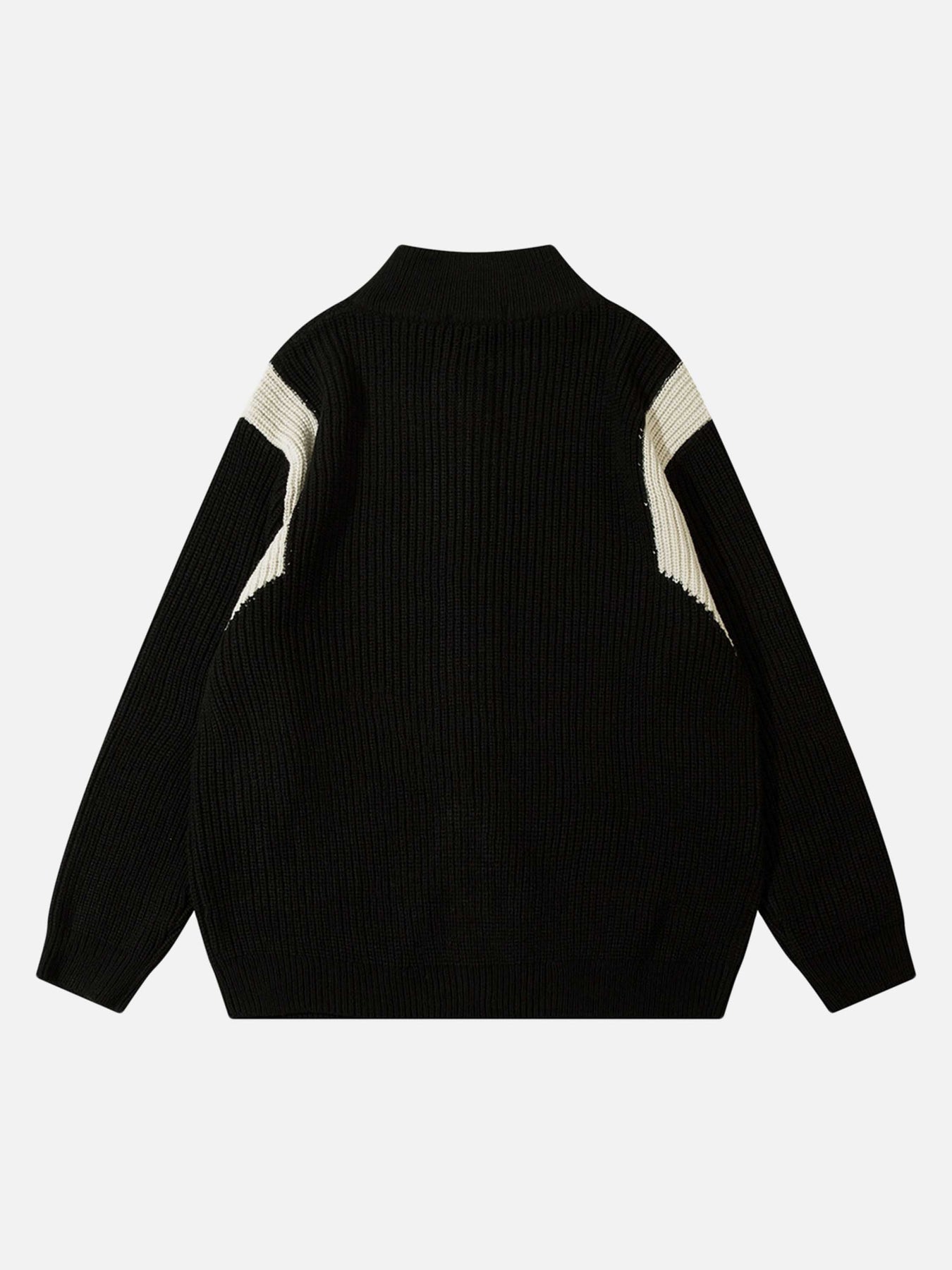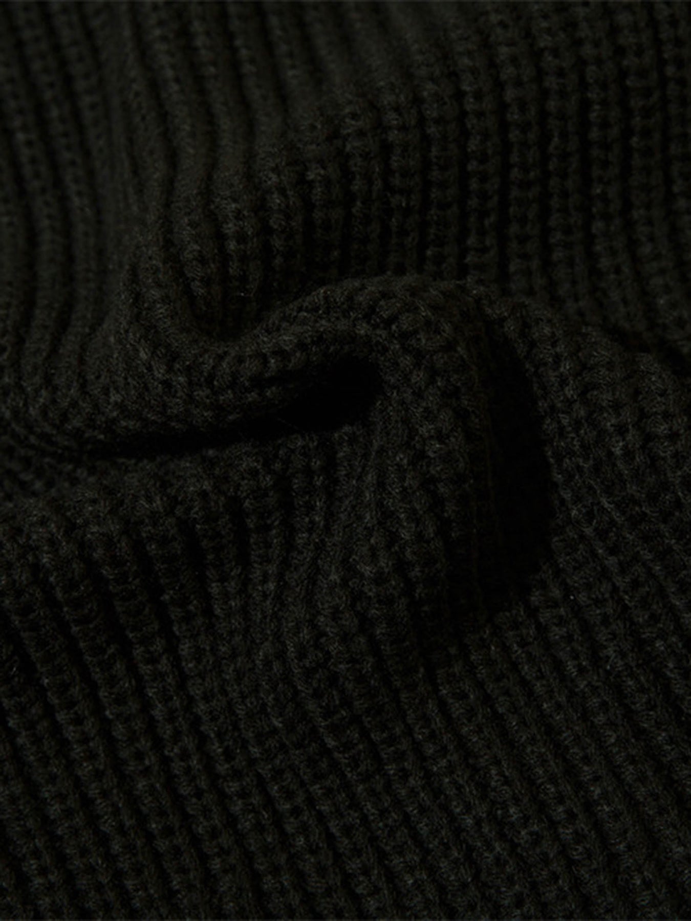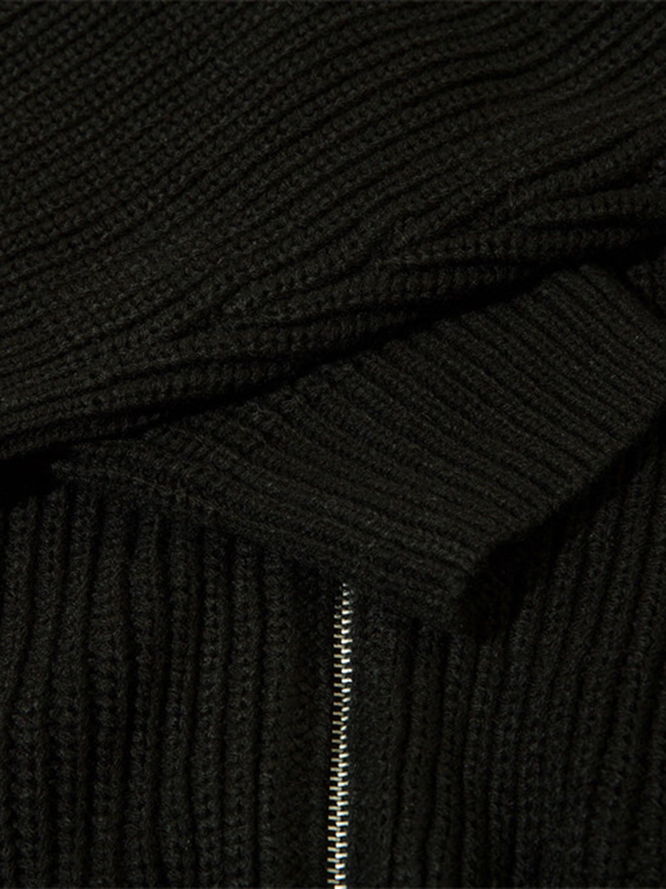 Schwarzer Strickpullover mit Reißverschluss, grobe Wolle, modisch, warm, Herrenbekleidung.
