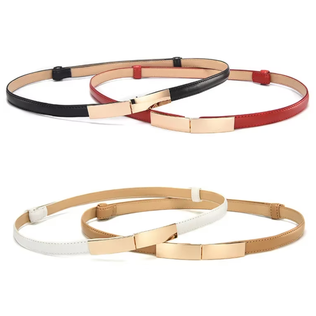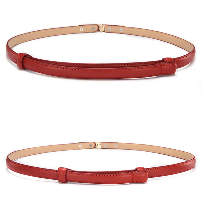 Werten Sie Ihren Look mit diesem vielseitigen Gürtelkleid auf – ein einfaches, aber stilvolles Accessoire, das Ihrem Outfit mühelos einen Hauch von Raffinesse verleiht. Das aus hochwertigem Leder gefertigte, dünne und schmale Design sorgt für ein schlankes und elegantes Erscheinungsbild. Die elastische Metallschnalle in Gold ergänzt das Design wunderbar.