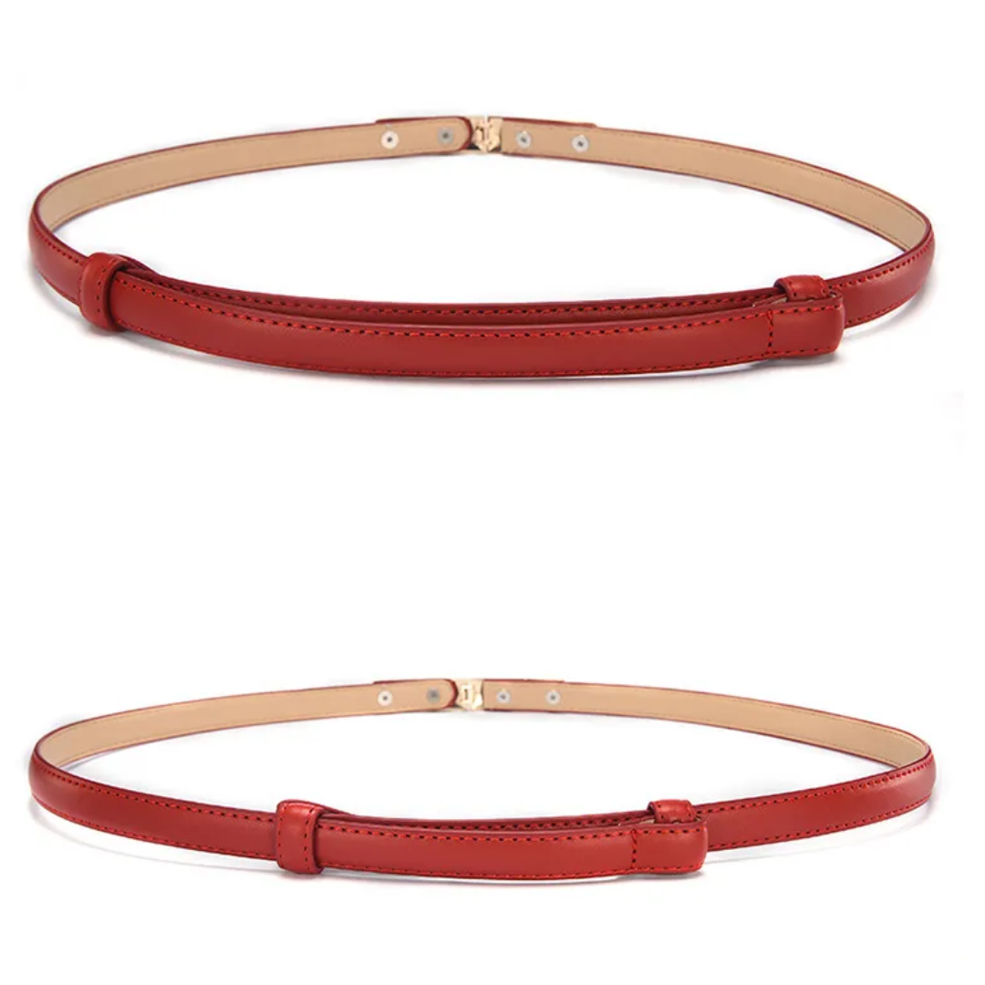 - Anspruchsvoll und elegant: Das dünne, schmale Design aus hochwertigem Leder bietet einen schlanken und eleganten Look, während die elastische Metallschnalle in Gold einen Hauch von Raffinesse verleiht. Dieser Taillengürtel eignet sich perfekt zum Befestigen von Kleidern oder um Ihrer Alltagskleidung eine schicke Note zu verleihen.