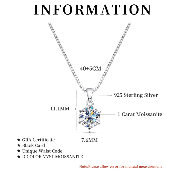 925 Sterling Silber Halskette, 1 Karat Moissanit, GRA-zertifiziert, 40+5cm, Schmuckanhänger.