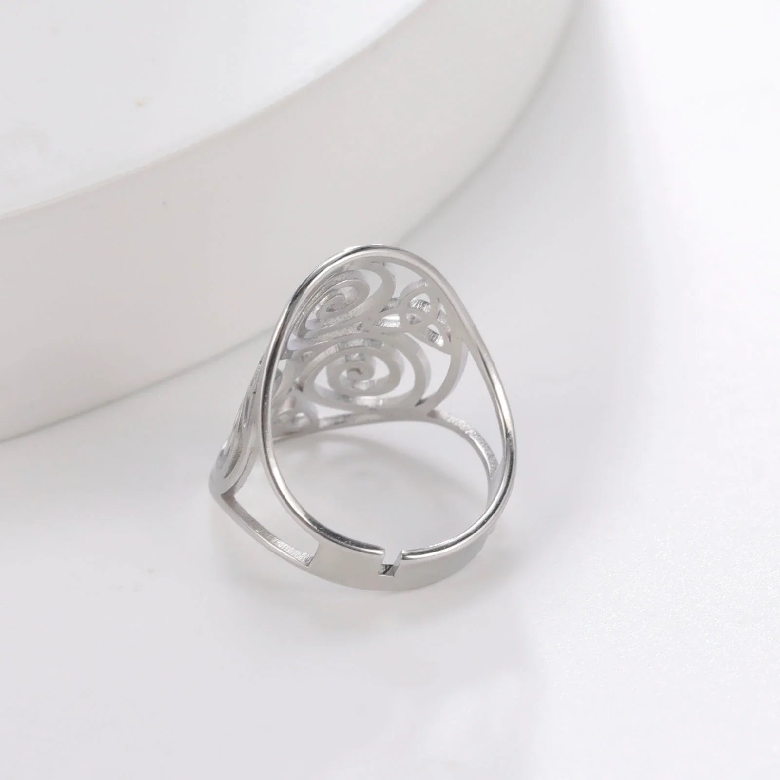 Silberner Damenring mit filigranem Muster, elegantes Design, Schmuck für Frauen.