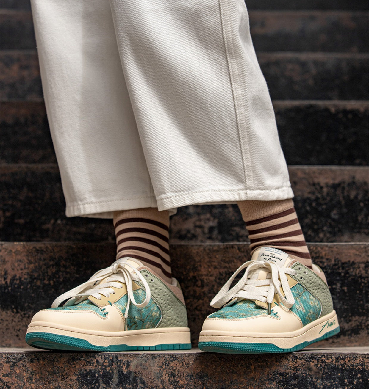 Die Kunst-Sneakers Arta bringen Van Goghs berühmtes Gemälde Mandelblüte direkt an deine Füße. Jedes Paar vereint Ästhetik und Komfort mit einem detailverliebten Design, das sich von der Masse abhebt. Die rutschfeste Sohle, das atmungsaktive Innenfutter und das kreative Printmotiv machen diese Schuhe zum echten Blickfang. Ob casual oder kunstvoll gestylt – diese Sneakers erzählen deine Geschichte mit Stil.