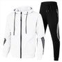 Weißer Hoodie und schwarze Jogginghose mit Streifen, Sportbekleidung Herren, bequemes Set