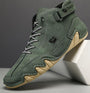 Beiger Herren-Sneaker aus Leder, hohe Knöchel, rutschfeste Sohle, modisches Design.