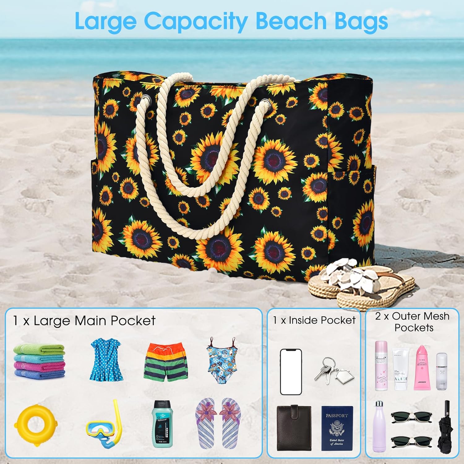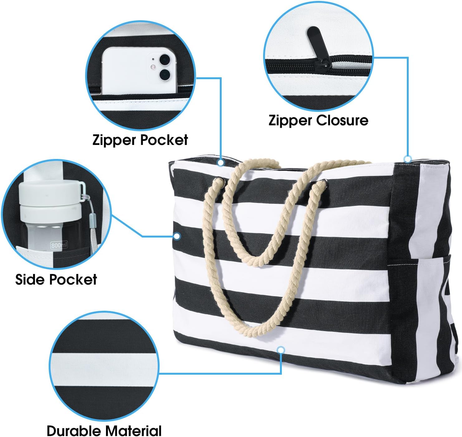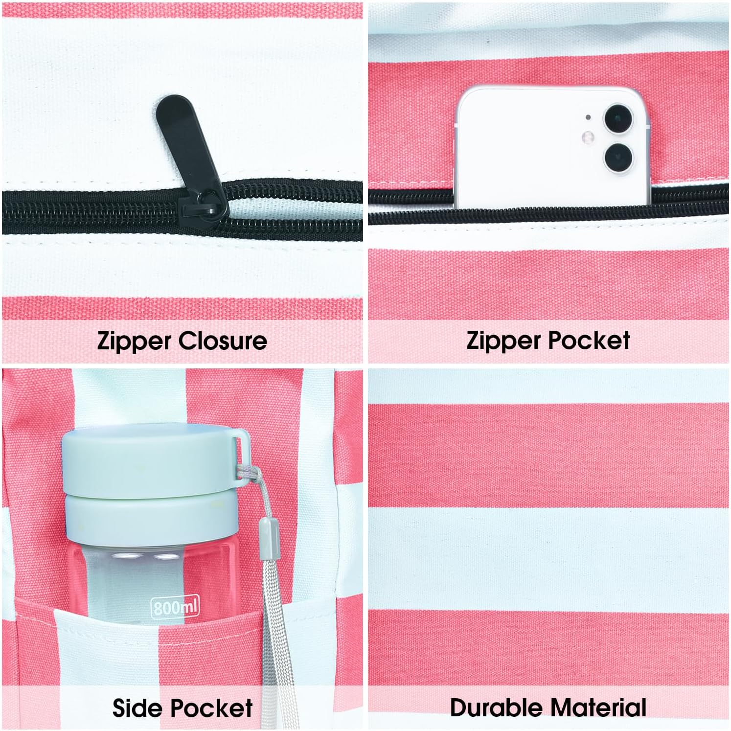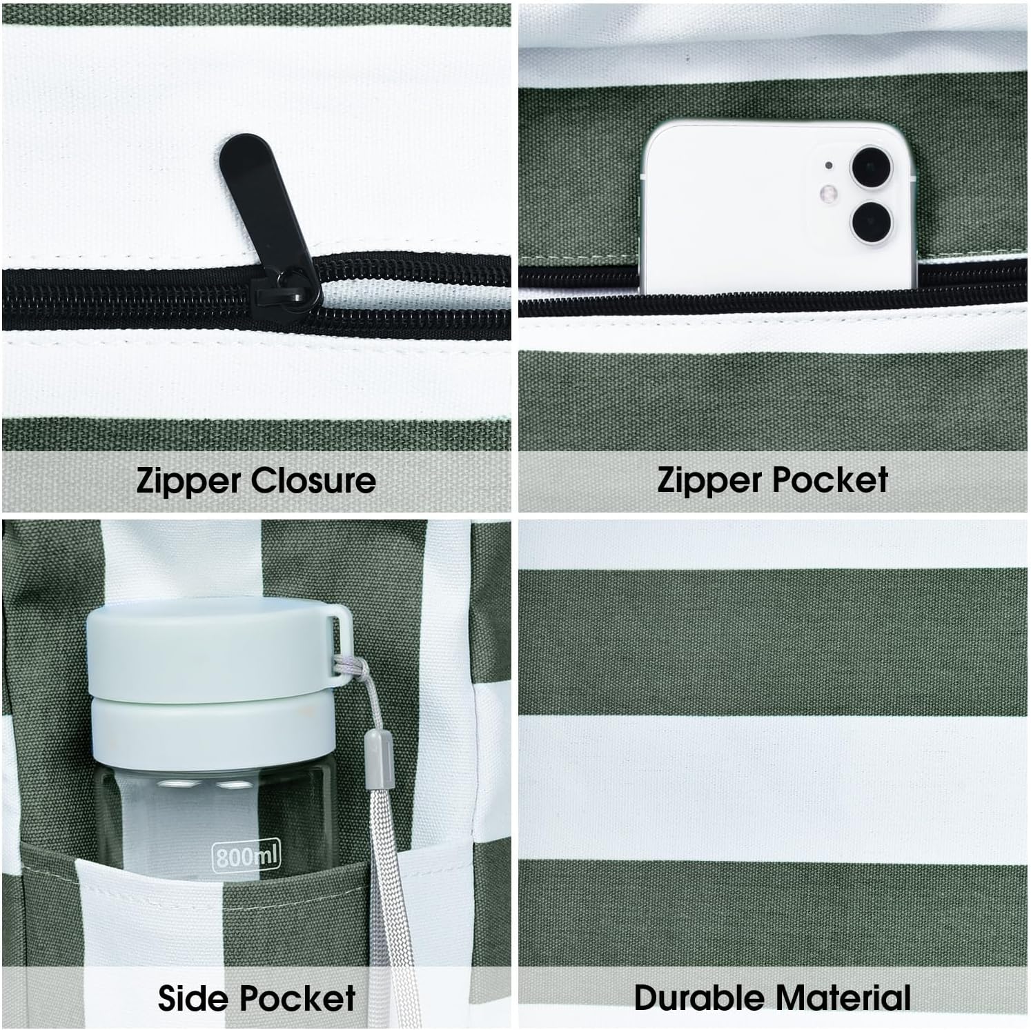 Hergestellt aus strapazierfähigem und ölbeständigem Material, ist diese große Tasche leicht, waschbar und perfekt für den täglichen Gebrauch. Sie bietet ausreichend Platz für wichtige Dinge wie Handtücher, Flaschen, Lunchpakete, Snacks, Bücher und mehr. Mit zwei seitlichen Flaschenfächern und einem sicheren Reißverschluss oben ist sie ideal für Arbeitstage, Strandtage oder Abendausflüge. Die Innentasche mit Reißverschluss bewahrt Wertsachen sicher auf, während die breiten, weichen Griffe für ein angenehmes Tragegefühl den ganzen Tag über sorgen.
