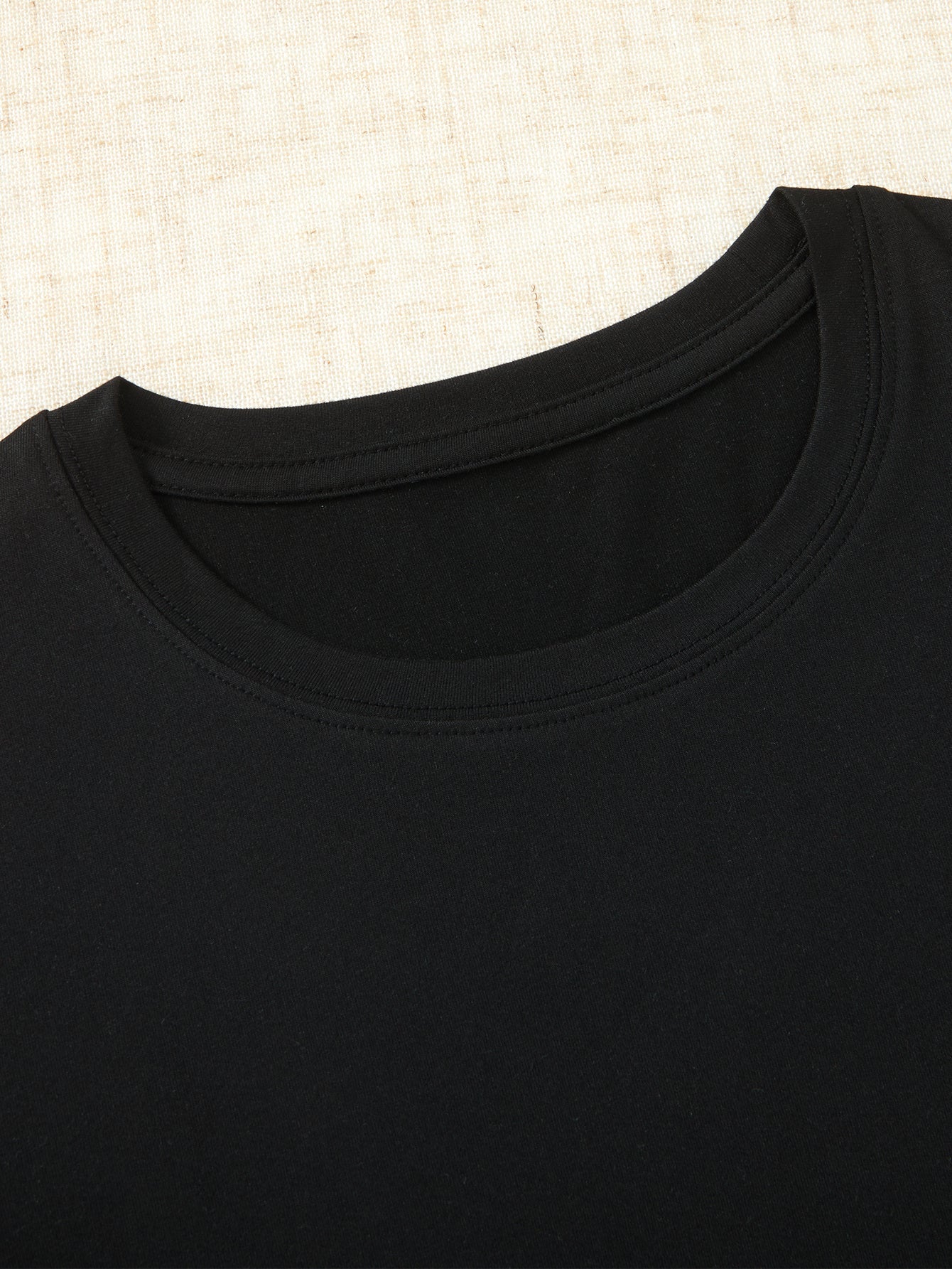 - Klassischer Schnitt: Mit Rundhals und kurzen Ärmeln