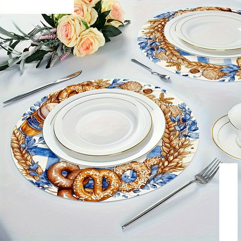 4 Stück runde Holz-Platzsets mit Oktoberfest-Motiven – BreznPlatzSet Oktoberfest 2025