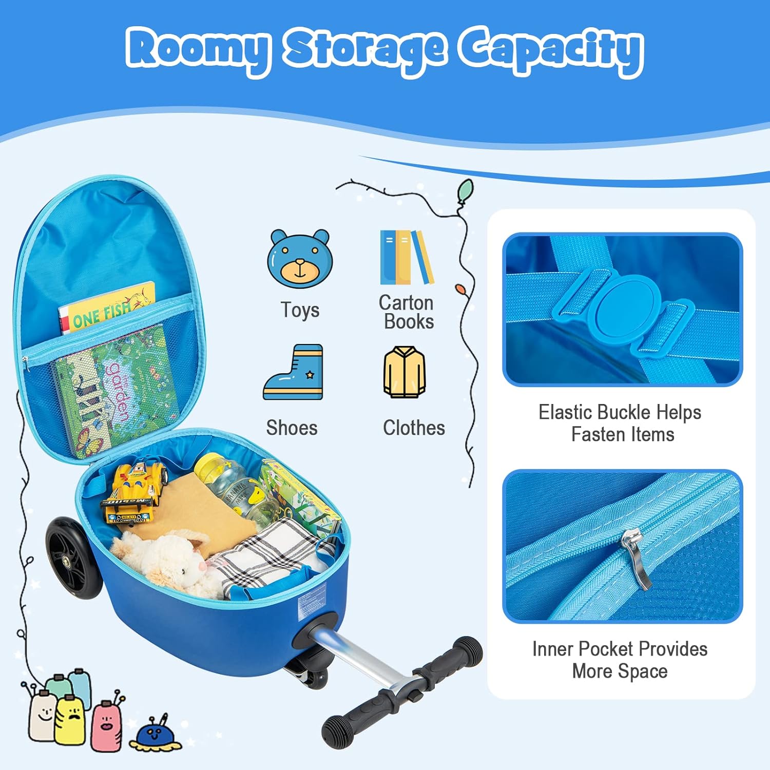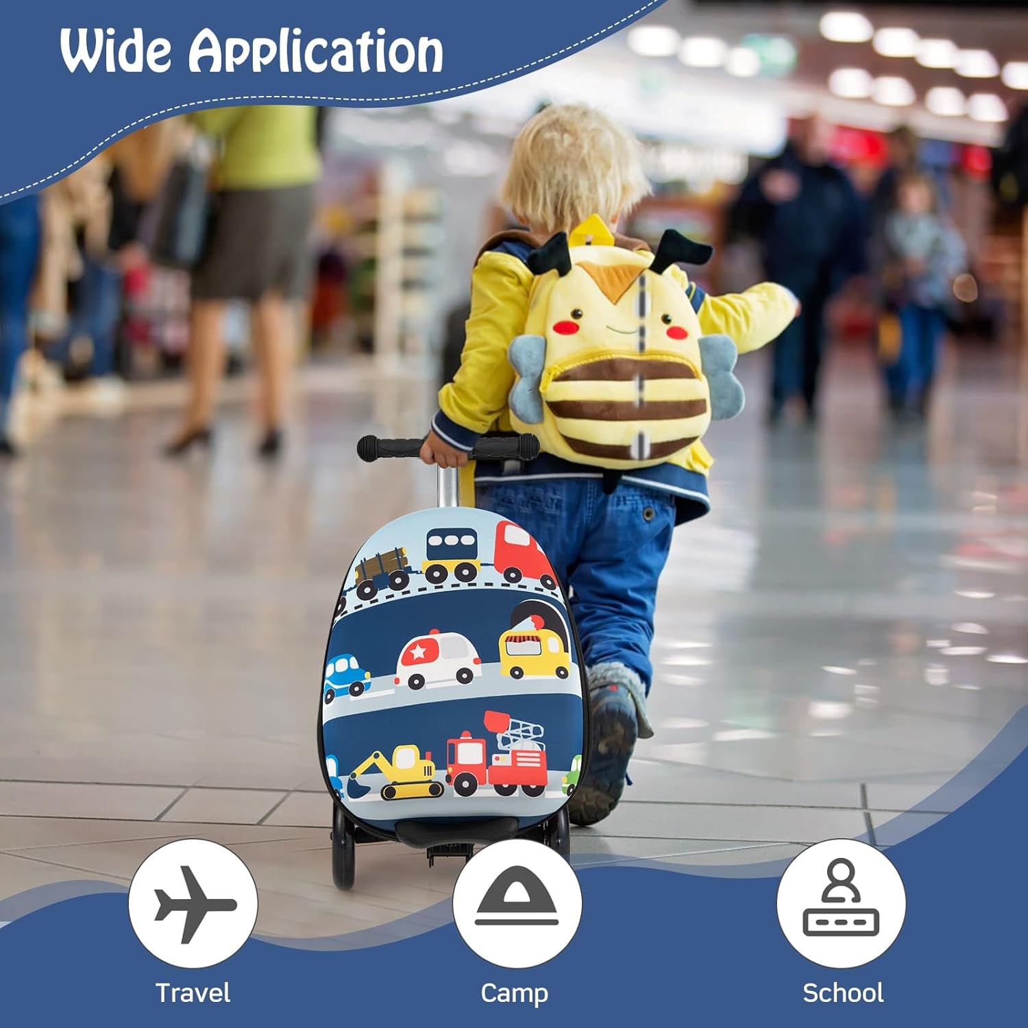 Machen Sie Reisen spannend für Kinder mit diesem Ride-On Scooter Koffer – perfekt für Schulausflüge, Familienurlaube oder Abenteuer am Flughafen. Er hält die Kinder unterhalten und sorgt dafür, dass Eltern stressfrei bleiben.