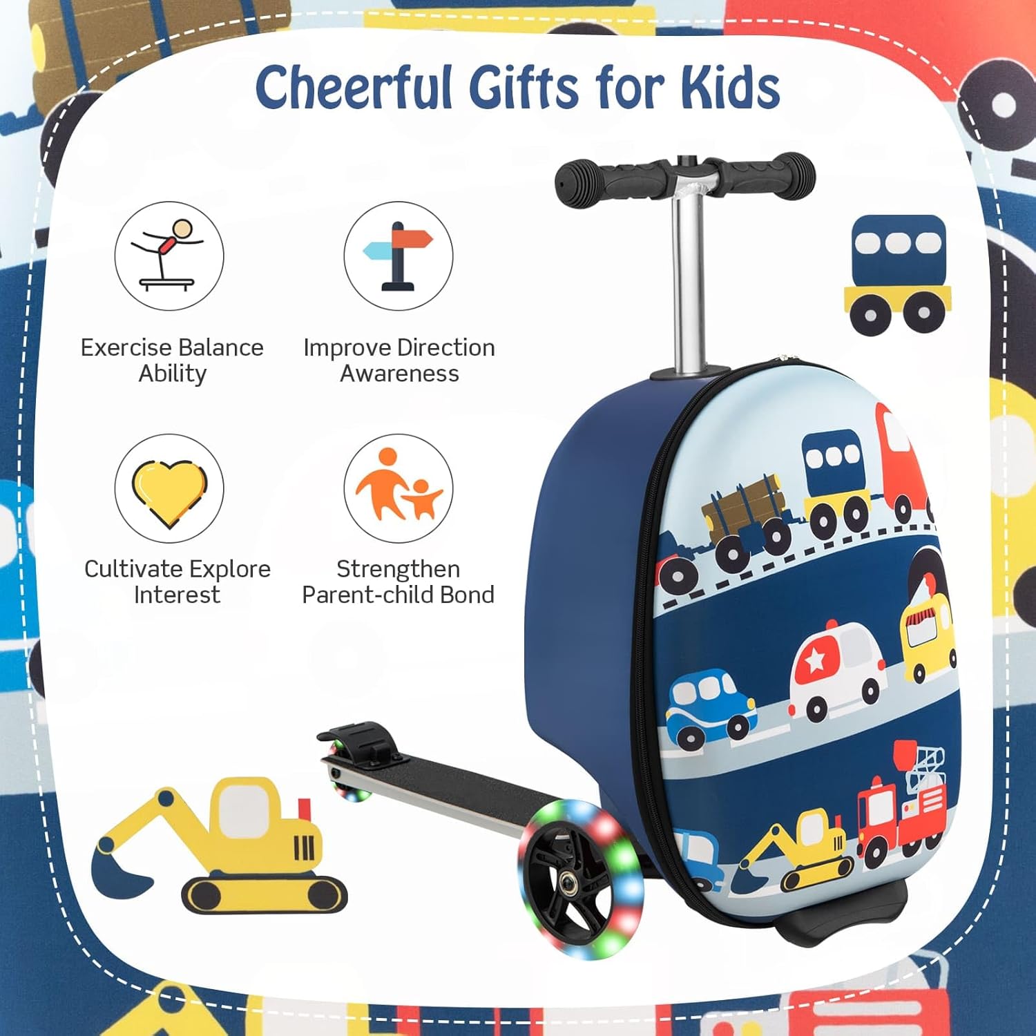 Kinder 2-in-1 Ride-On Scooter Koffer mit LED-Rädern