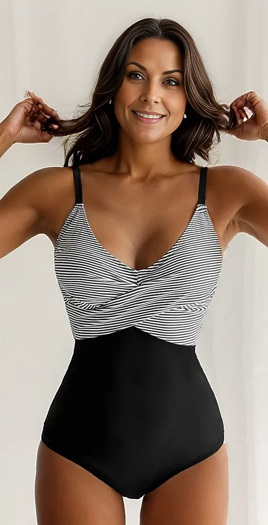 Gestreifter Badeanzug mit verstellbaren Trägern – Leona