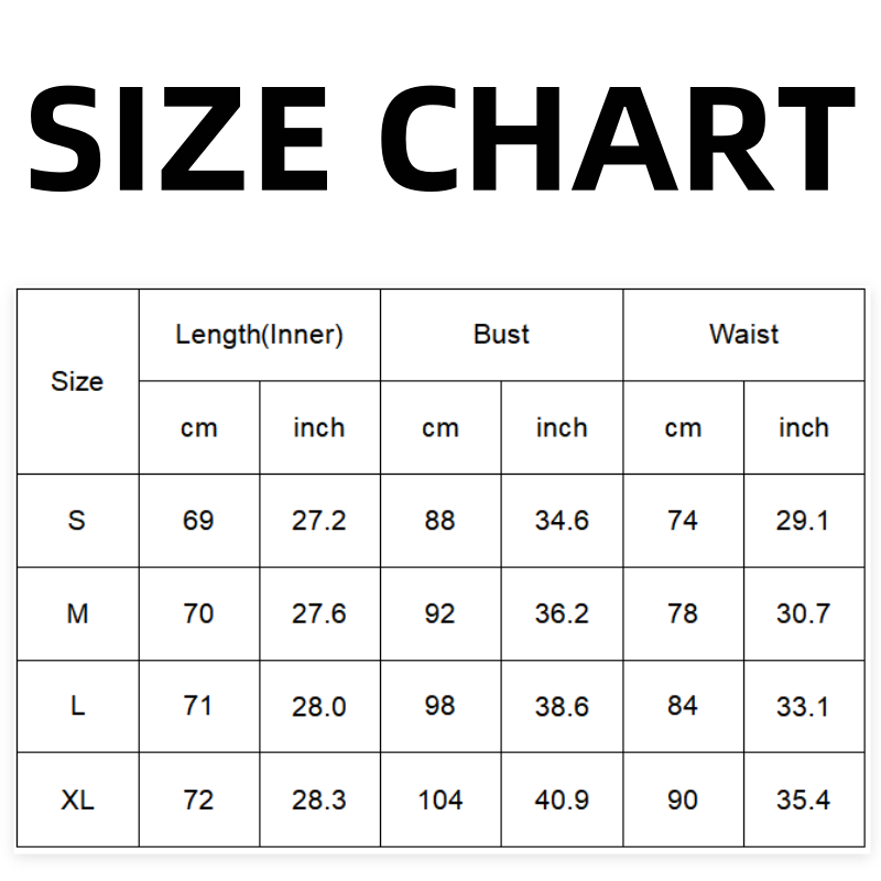 | Größe | Innenlänge (cm) | Brustumfang (cm) | Taillenumfang (cm) |