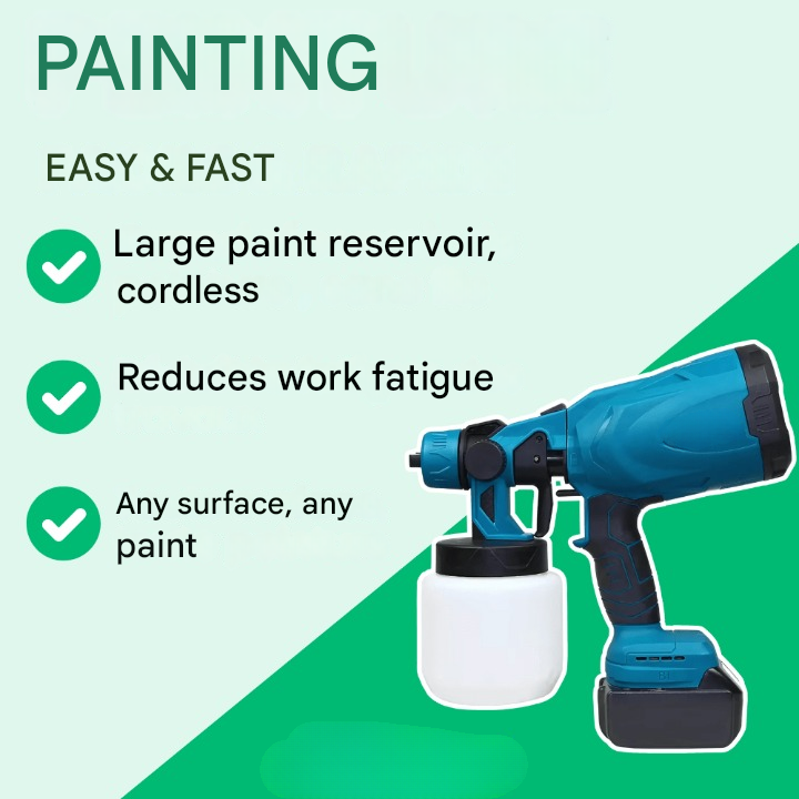 Diese kabellose Farbspritzpistole sorgt für gleichmäßige Ergebnisse auf Wänden, Möbeln und Zäunen. Leicht, handlich und bis zu achtmal schneller als ein Pinsel – ideal für Heim- und Profi-Anwendungen. Mit drei Sprühmodi und einem 800-ml-Behälter arbeitest du präzise und ohne ständiges Nachfüllen. Der Akku bietet volle Bewegungsfreiheit für komfortables Sprühen drinnen und draußen.