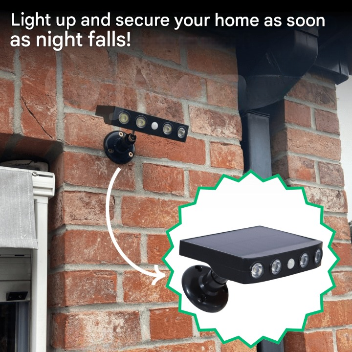 Diese Solarleuchte aktiviert sich bei Bewegung und leuchtet bis zu 8 Stunden. Ihre LEDs liefern starke Helligkeit, der Akku lädt tagsüber über das Solarpanel. Mit IP65-Schutz bleibt sie auch bei Regen zuverlässig.