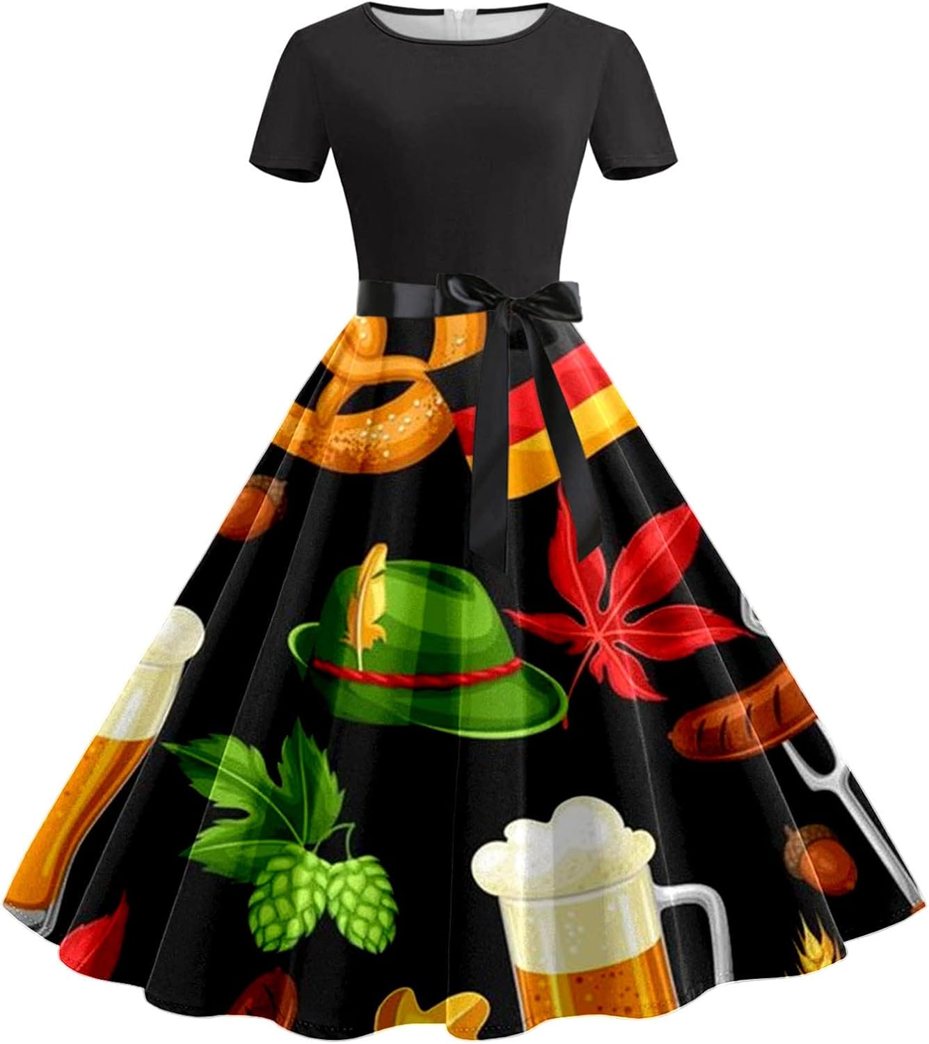 Bierkrug-&-Brezn-Kleid mit Taillenband – Anna Oktoberfest 2025