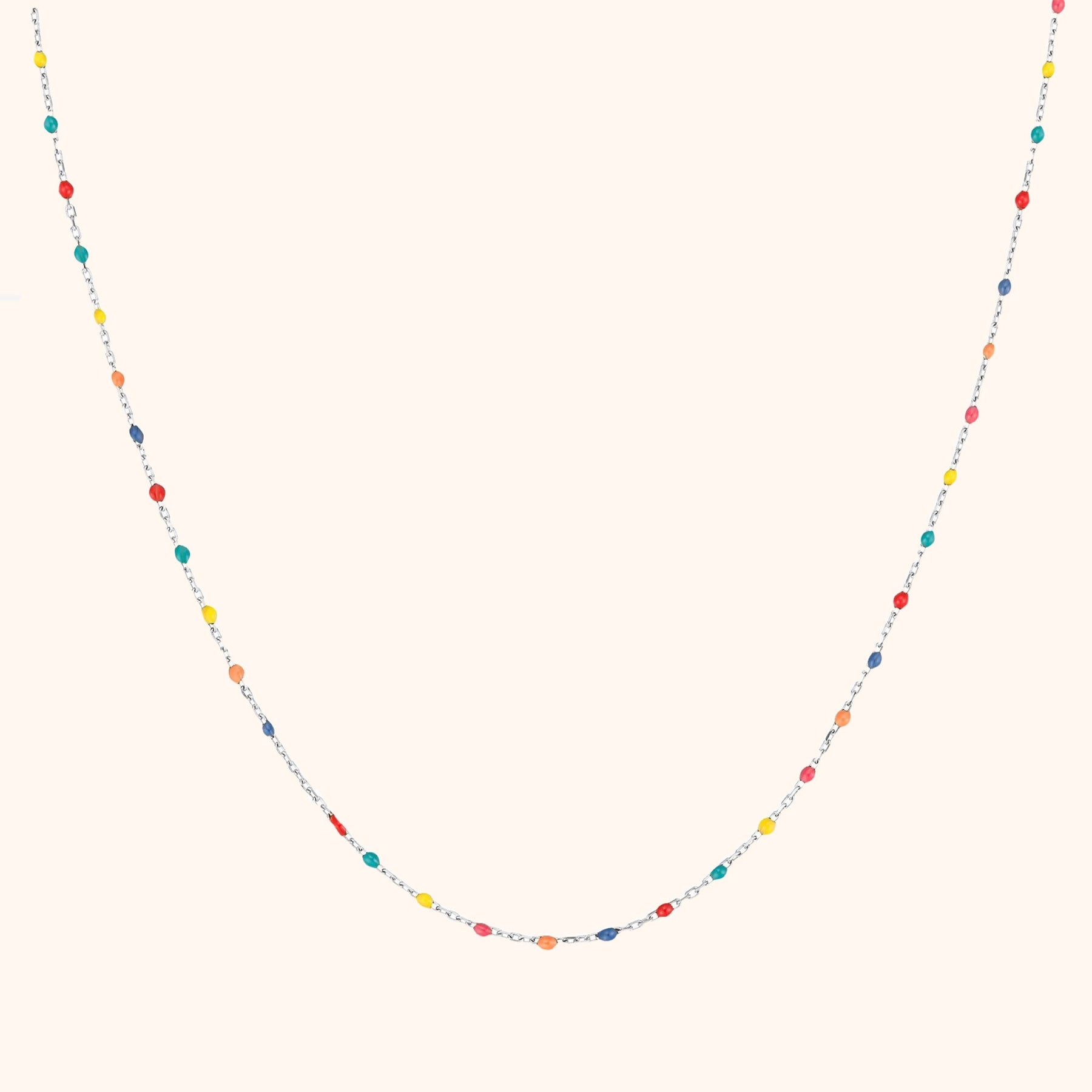 Unsere Iris Regenbogenkette ist ein lebhaftes Schmuckstück, verziert mit farbenfrohen Perlen, die für einen verspielten und frischen Look sorgen. Gefertigt aus hochwertigem Silber und erhältlich in Silber oder mit einer 18K Vergoldung, ist diese Kette ideal, um jedem Outfit Farbe und Persönlichkeit zu verleihen. Die verstellbare Länge garantiert eine perfekte Passform.