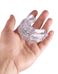 Transparente Anti-Schnarchschiene aus Kunststoff, verstellbar, für besseren Schlaf.