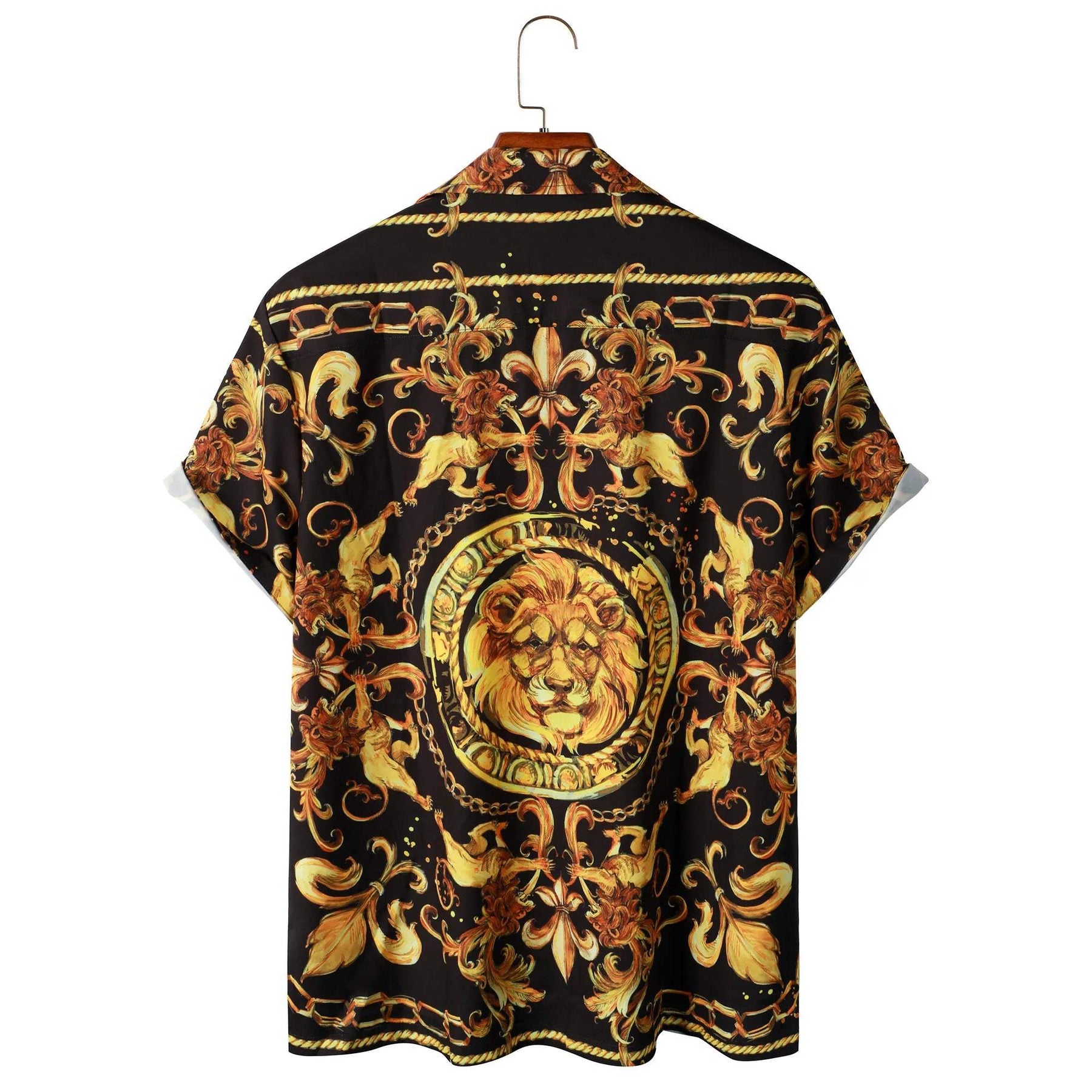 Das Kurzarmhemd Dante kombiniert markantes Design mit königlicher Ausstrahlung. Die tiefschwarze Basis wird durch goldene und gelbe Barockelemente mit zentralem Löwenmotiv kontrastreich in Szene gesetzt. Der hochwertige Polyesterstoff fühlt sich weich an, glänzt dezent und sorgt für angenehmen Tragekomfort. Perfekt für Partys, Events oder stilbewusste Abende – dieses Hemd ist ein Statement-Piece, das Blicke garantiert auf sich zieht.