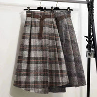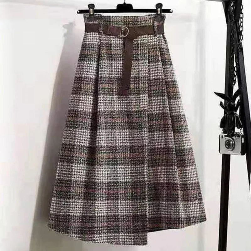 - Eleganter langer Rock mit einem Karomuster und einem Gürtel für einen trendigen Look.