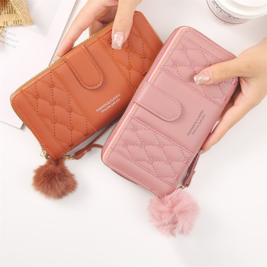 Schauen Sie sich dieses supersüße und praktische lange Armband-Portemonnaie an, eine perfekte Ergänzung zu Ihrem Accessoire-Sortiment. Dieses Portemonnaie hat ein schlichtes Farbdesign, verfügt aber über ein entzückendes gestepptes Herz-Stickmuster, das Ihrem täglichen Tragen etwas Flair verleiht.