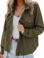 Damenjacke grün, lässig, Baumwolle, Knopfleiste, Brusttaschen, modisch, Herbstmode.