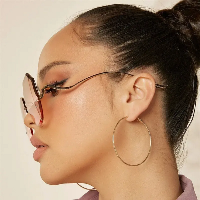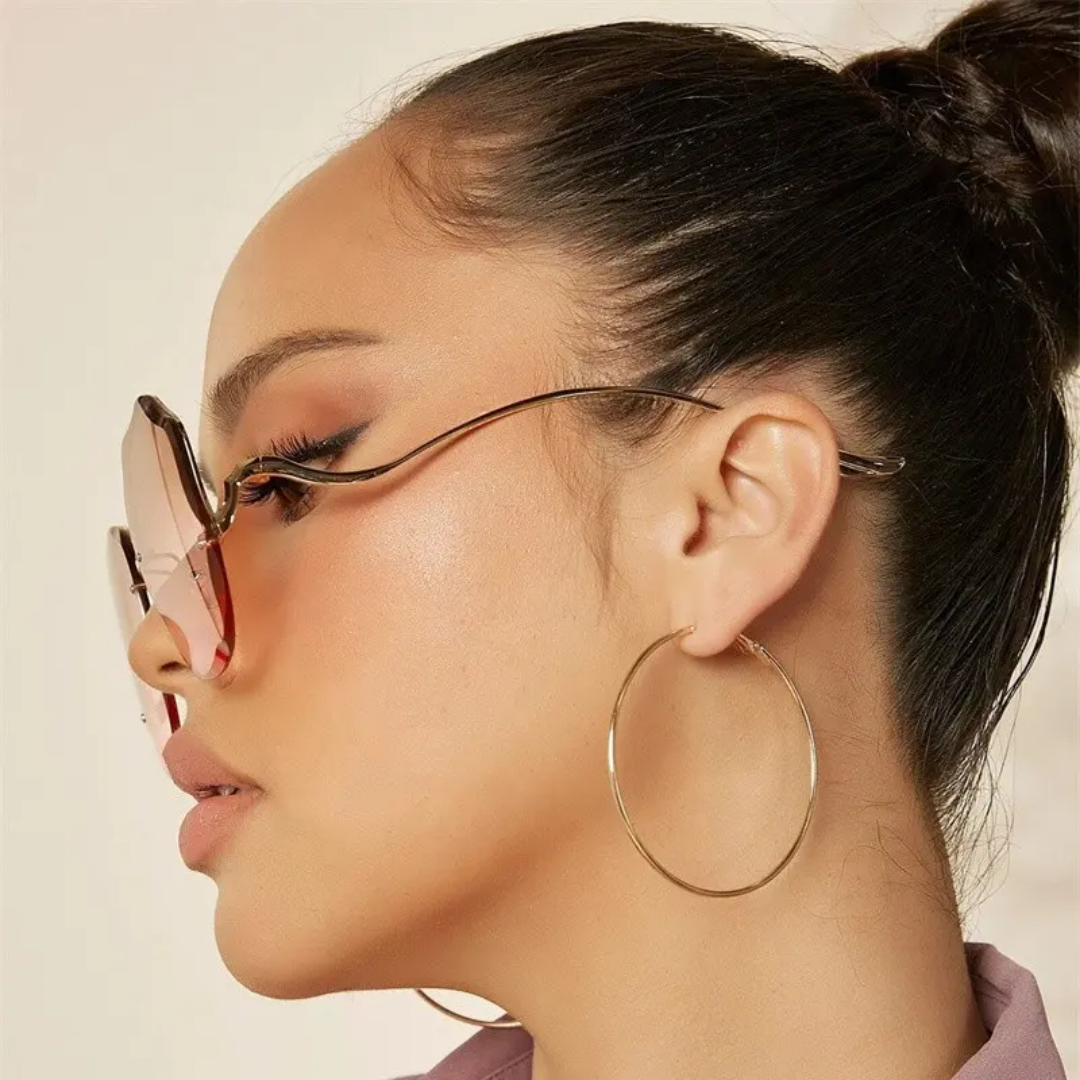Bringen Sie Ihre Farbpalette mit dieser luxuriösen Sonnenbrille mit Farbverlauf auf Vordermann. Sie haben gebogene Metallbügel und ein cooles randloses Design, das geradezu schick aussieht. Die Verlaufsgläser sind nicht nur stylish – sie schützen Ihre Augen auch mit UV-Schutz. Weiterhin verleihen die geschwungenen, goldenen Metallbügel Ihrem gesamten Look einen Hauch von Raffinesse.