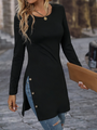 Sind Sie bereit, die Essenz der Herbstmode einzufangen? Wir stellen Ihnen das VintageAura Dress vor - ein schickes, trendiges Outfit, in dem Raffinesse auf Komfort trifft. Dieses schlichte Kleid mit rundem Kragen, langen Ärmeln, geteiltem Knopf und unregelmäßigem Saum lässt Sie nicht nur dem Trend folgen, sondern ihn anführen!