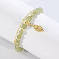 Vergoldetes Hetien Jade Armband: Doppellagige Blatt-Eleganz für Frauen und Mädchen!