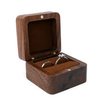 Holz-Ringbox mit zwei Ringen, Verlobungsring, Schmuckaufbewahrung, elegantes Design.