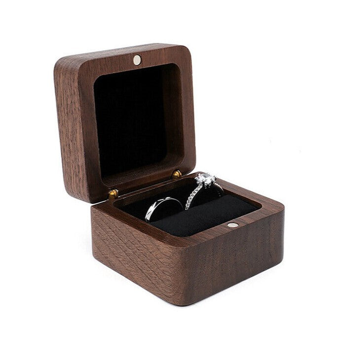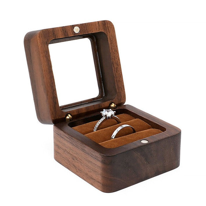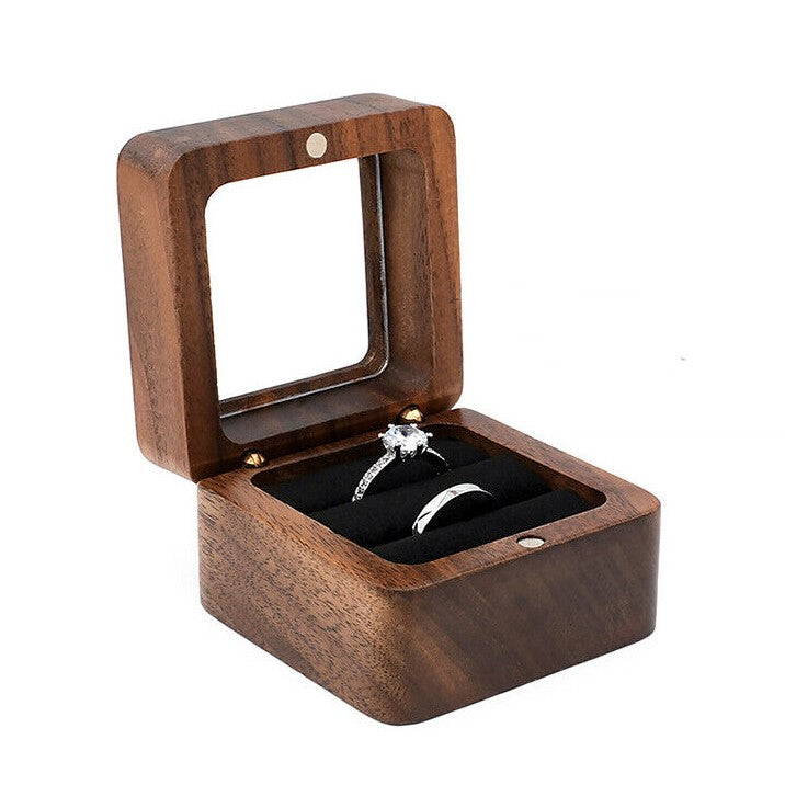 Luxuriöse Holz-Ringboxen mit Schmuck, elegantes Design, ideal für Verlobungsringe, Geschenkbox.