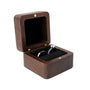 Holz-Ringbox mit Glasdeckel, zwei Ringe, Schmuckaufbewahrung, dunkelbraun, elegant, Geschenkbox.