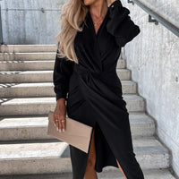 Dieses langärmelige Kleid mit V-Ausschnitt ist ein Must-have für Frauen! Es kombiniert Eleganz und Komfort und eignet sich perfekt für verschiedene Anlässe.