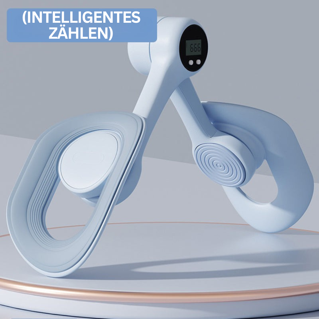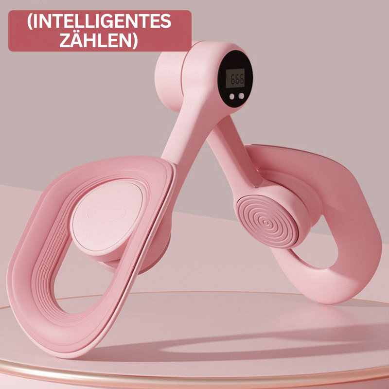 Rosa Oberschenkeltrainer mit digitalem Zähler, Fitnessgerät für Bein- und Gesäßtraining.