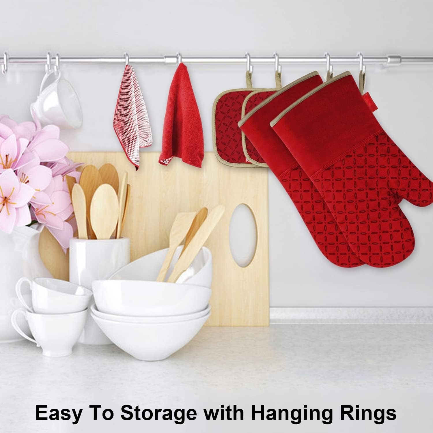 - 6-teiliges Set: Enthält 2 Ofenhandschuhe, 2 Topflappen und 2 Mini-Kniffen.