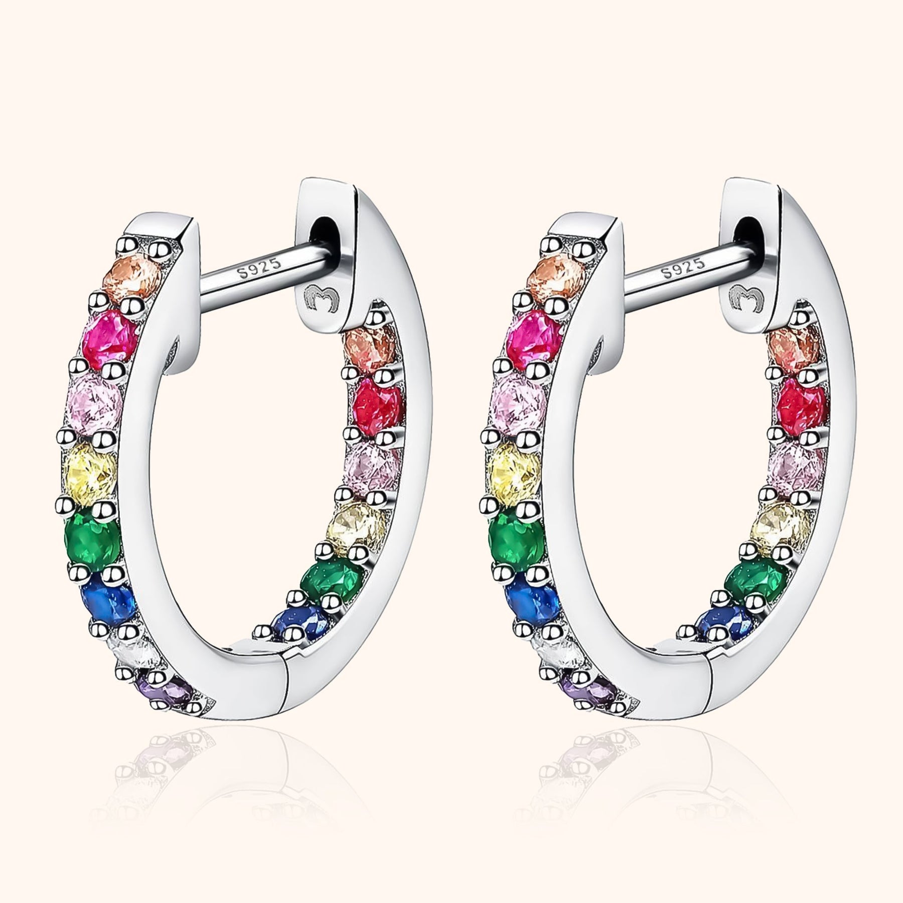 Unsere Sofia Regenbogen-Creolen sind trendige Ohrringe, verziert mit funkelnden Zirkonia in verschiedenen Farben. Gefertigt aus hochwertigem Sterling-Silber (S925) und erhältlich in Silber oder mit einer 18K vergoldeten Oberfläche, sind diese Ohrringe eine farbenfrohe und elegante Ergänzung für deine Schmucksammlung. Perfekt für einen spielerischen und stilvollen Look.