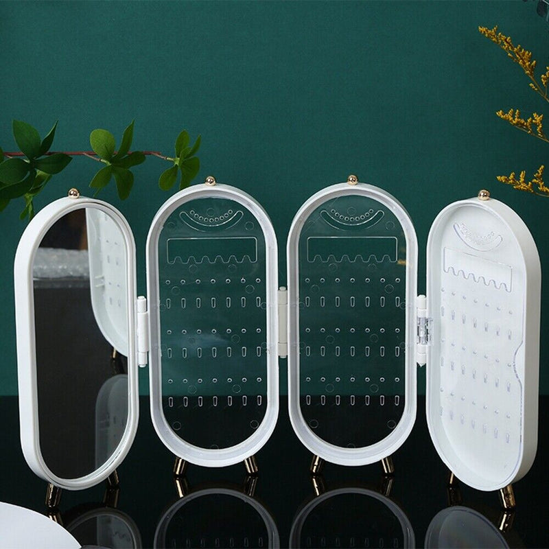 - Vielseitige Schmuckaufbewahrung: Dieses kompakte und faltbare Design umfasst einen Spiegel und einen Ständer und bietet eine praktische und elegante Möglichkeit, Ihre Ringe, Ohrringe und andere Accessoires zu organisieren.