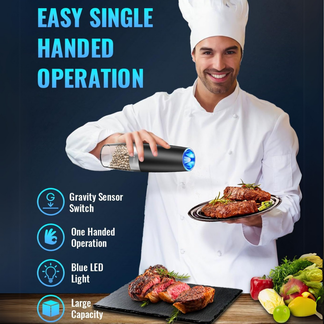 Verbessern Sie Ihr Kocherlebnis mit unserem GrindMaster Duo Wiederaufladbaren Elektrischen Pfeffer- und Salzmühlenset, das für müheloses Würzen auf Knopfdruck entwickelt wurde. Dieses stilvolle 2er-Set ist ein unverzichtbares Accessoire für jeden Hobbykoch und Kochliebhaber.